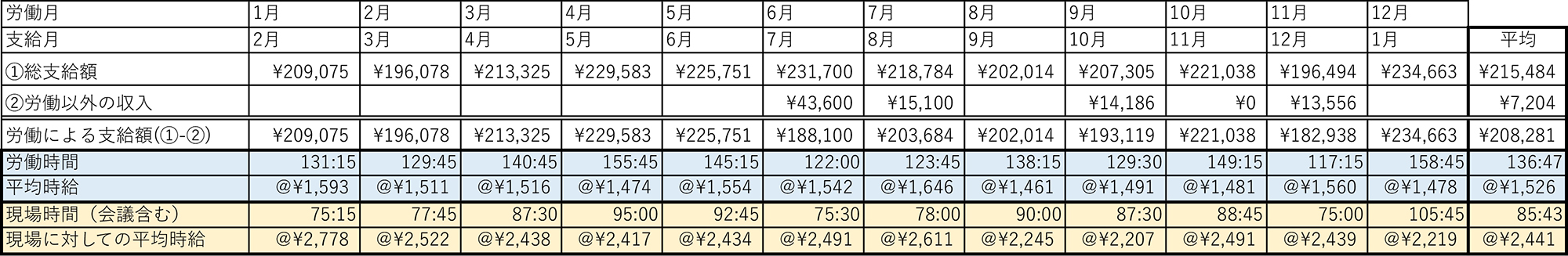 現場実働時間だけで割ると時給2,000円~2,500円分の収入になります。